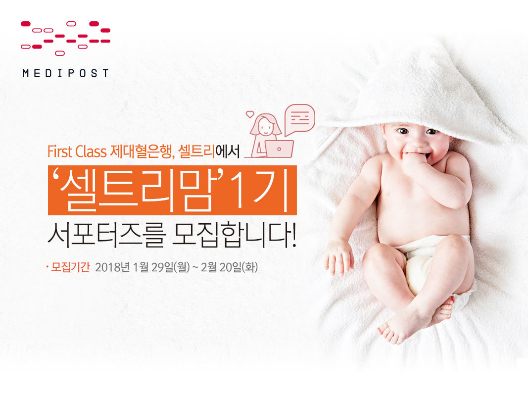 메디포스트(대표: 양윤선)는 제대혈(탯줄혈액) 보관에 관한 다양한 정보와 자사 소식 등을 전달할 홍보대사 ‘셀트리맘’을 모집한다.